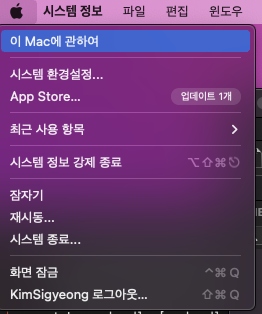 왼쪽 상단의 '홈 메뉴' > '이 Mac에 관하여'로 이동하여